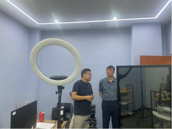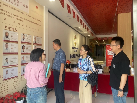 在湖北未来家园高科技农业股份有限公司产业研学院主任王皂香、健康平衡管理中心沉浸直播部负责人刘义恒的陪同下,张昉一行参观了该企业的健康体验馆、沉浸式直播空间、雨弘济世中医门诊等,深入了解企业在健康养生产业、中医产业化运营、文旅融合发展方面的最新成果和发展规划。
