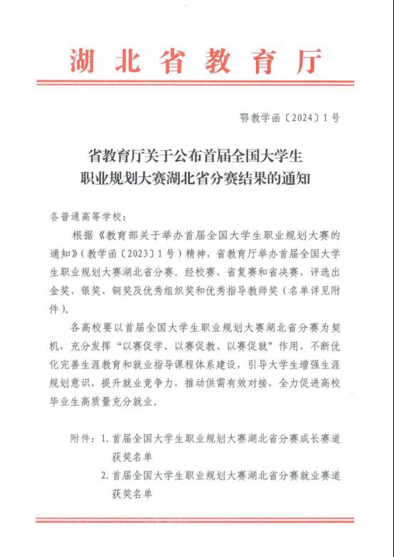 “筑梦青春志在四方,规划启航职引未来!”近日,由湖北省教育厅主办的首届全国大学生职业规划大赛湖北省分赛在激烈的角逐中落下帷幕。我校选拔推荐的2名参赛选手斩获1银1铜。