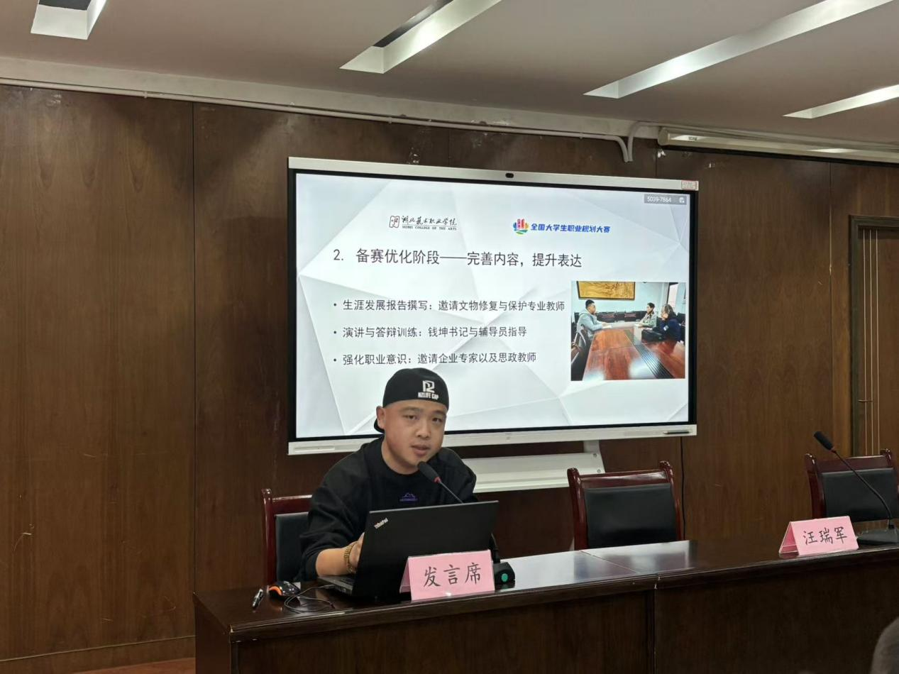 音乐学院辅导员王雁翎围绕大赛的重要性、指导教师的角色和职责、参赛材料的构成及要求、常见问题与对策等四个方面与在场师生作交流。艺术设计学院辅导员张亚卓结合学校“双高计划”建设要求,解读大赛的参赛意义,交流参赛指导过程,分享赛事工作经验。音乐学院学生彭浪从明确参赛要求到制定职业规划再到积累工作经验等多方面,用案例故事、能力展示给大家带来了精彩的讲述。艺术设计学院学生胡恒升通过赛事分析、材料分析和演讲分析,帮助大家梳理大赛基本要素,分享如何收整材料、优化提升参赛质量。