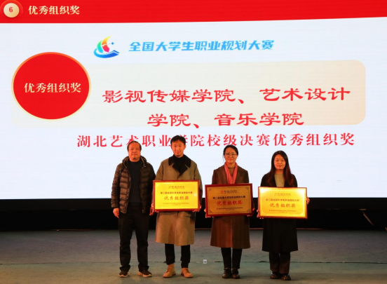 经过激烈角逐,艺术设计学院胡恒升荣获成长赛道金奖,影视传媒学院辛睿霖荣获就业赛道金奖,艺术教育学院程哲艺等18人分别获成长赛道、就业赛道银奖、铜奖和优秀奖;叶芬、熊辂等8位教师荣获“优秀指导教师”;影视传媒学院、艺术设计学院、音乐学院3个学院荣获大赛“优秀组织奖”。