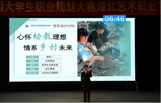 经过校级复赛评审,15名选手进入成长赛道决赛,5名选手进入就业赛道决赛。决赛现场,成长赛道和就业赛道的20名选手参照全国总决赛评审标准和赛程要求,分别围绕自身的职业目标做生涯发展展示和求职综合展示,有的想做有温度有态度有深度的新媒体运营与推广师、有的想成为传承国家记忆的古书画修复师、有的立志成为扎根基层情系乡村的乡村幼儿教师等等。主题展示紧扣职业成长轨迹、职业发展目标和未来求职意向,并将个人理想与国家需要、经济社会发展紧密结合,充分展现了湖艺学子积极进取、努力奋斗的精神面貌和到祖国最需要地方建功立业的家国情怀。在场专家评委和企业评委们对选手表现进行点评与指导,高度肯定了选手们的职业规划陈述,并提出了针对性改进建议。