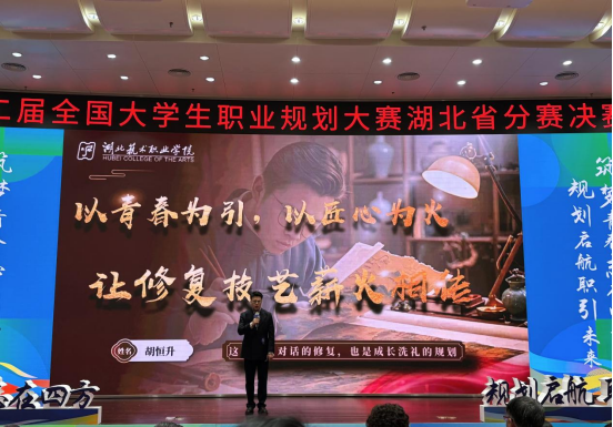 3月8日至9日,由湖北省教育厅主办的第二届全国大学生职业规划大赛湖北省分赛决赛在湖北大学圆满落幕。我校2名决赛选手与国家示范性高等职业院校、国家优质专科高等职业院校、国家“双高计划”建设院校等选手同台竞技,成功斩获1金1银,再创历史佳绩。其中影视传媒学院戏剧影视表演专业学生辛瑞霖荣获就业赛道金奖,艺术设计学院文物保护与修复专业学生胡恒升荣获成长赛道银奖。辛瑞霖还将有机会代表湖北省参加国赛。