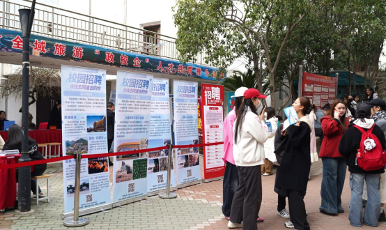 赤壁市人社局、赤壁市文旅局、赤壁市文旅投、湖北鼎途文旅集团先后进行了推介。赤壁市人民政府副市长陈超毅发出现场邀请,他呼吁学校2025届毕业生积极奔赴赤壁就业,赤壁拥有丰富的文化和旅游资源,“三国文化”“茶文化”“温泉康养”文化交相辉映,赤壁市政府和企业将敞开怀抱为湖艺毕业生做好无微不至的服务。