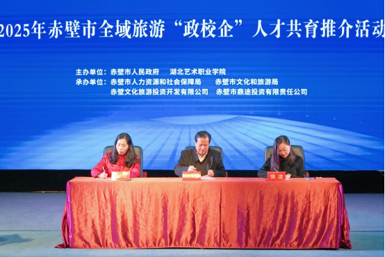 3月11日,湖北艺术职业学院与赤壁市人民政府共同主办的“2025年赤壁市全域旅游‘政校企’人才共育推介活动”在我校虎泉校区小剧场隆重举行。学校党委委员、副校长陈建中,党委委员刘传鸿,教务处、学生工作处,各二级学院党总支书记、辅导员及2025届毕业生参加了此次活动。